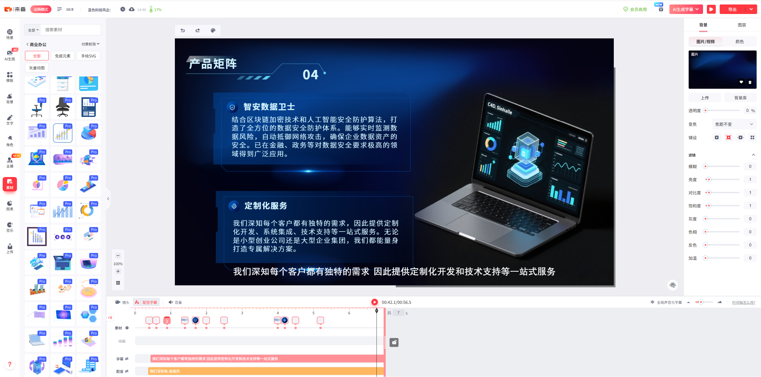 营销人员无需单独寻找配音或剪辑软件,即可一站式完成动画制作流程。