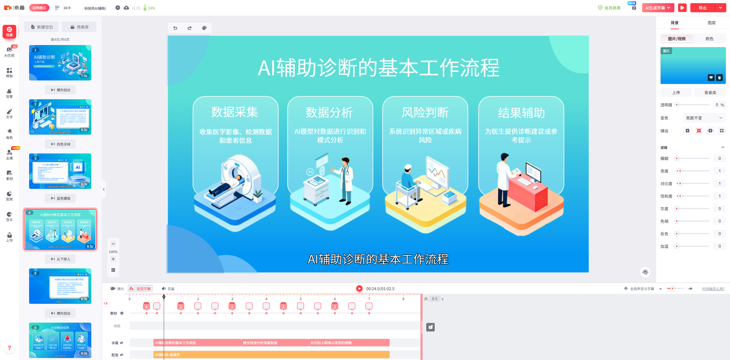 AI辅助诊疗工具的核心价值,往往隐藏在复杂的算法、多模态的数据处理和严谨的临床工作流之中。使用MG动画化繁为简,将抽象概念具象化,让技术“看得见”,正是B2B营销致胜的利器。借助来画动画平台这样的AI赋能工具,你可以将复杂的技术理念转化为一支支引人入胜的动态故事,精准触达目标客户,在激烈的市场竞争中抢占先机。