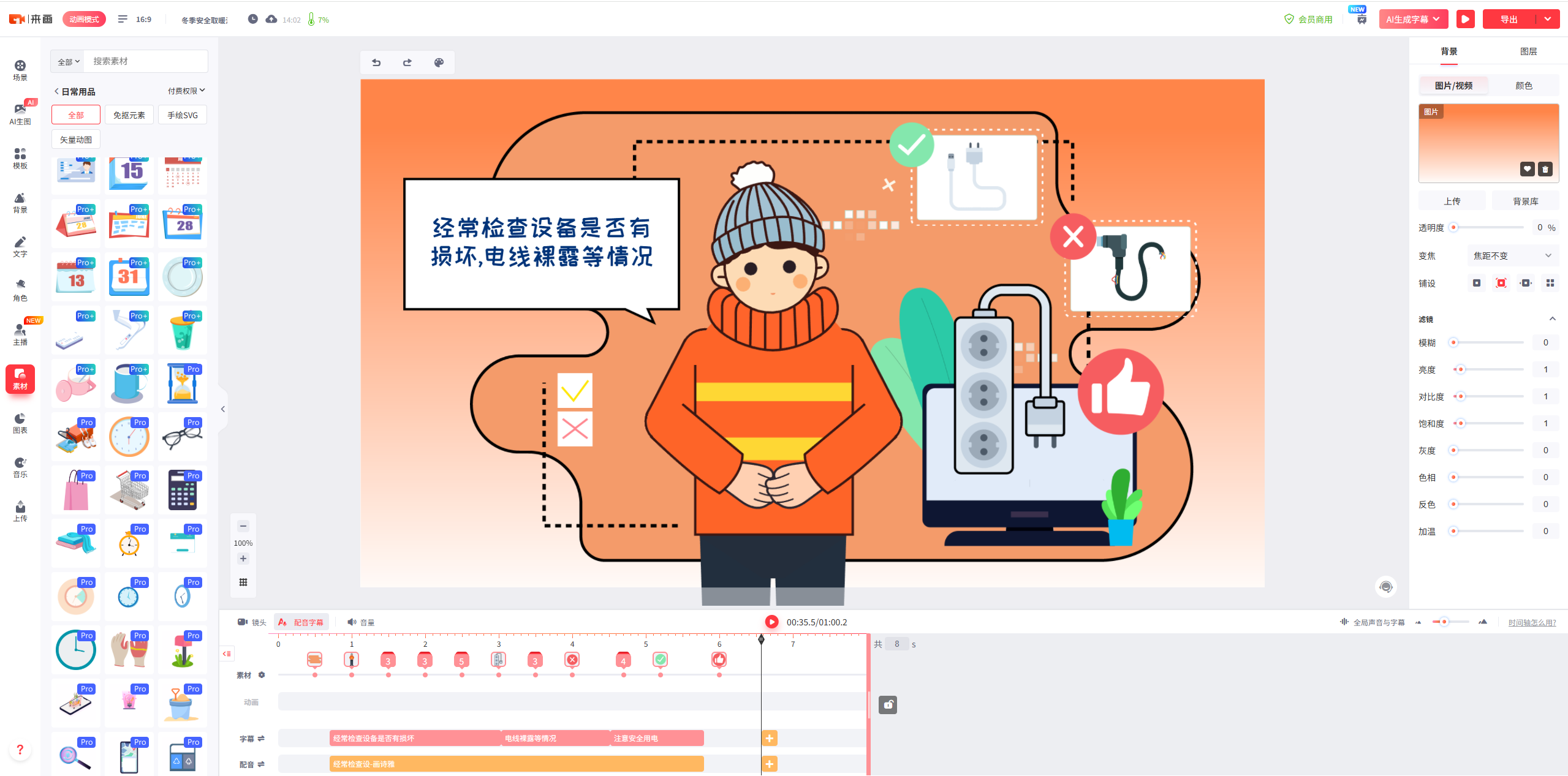 五步极速出片:来画平台制作“冬季取暖安全”MG动画全流程