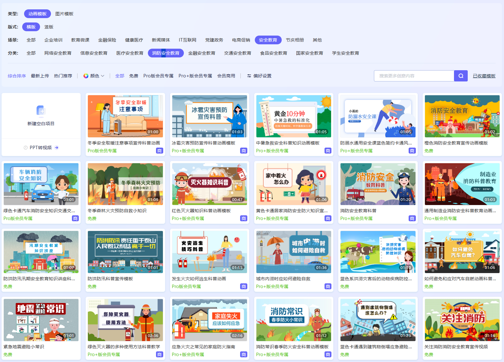 选择模板:登录来画动画平台,在模板库搜索“消防安全教育”,选中预设模板,开启MG动画制作。