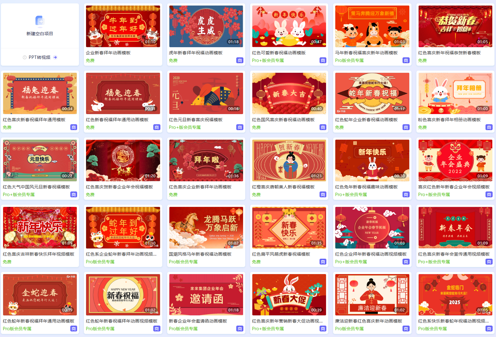 登录来画动画平台,在模板中心搜索“新春”、“拜年”等关键词,找到合适的模板。